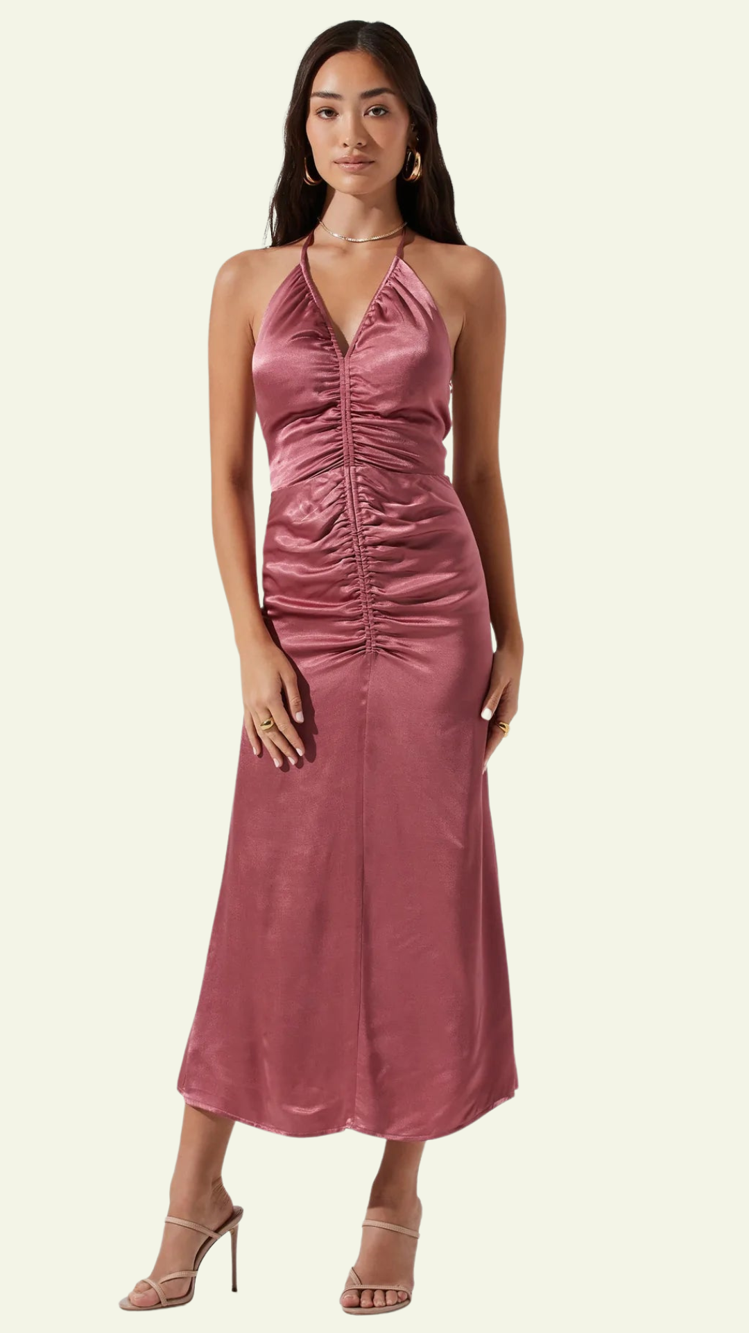 Turn heads with The Toledo Dress, a sophisticated satin-effect dress designed for elegance and style....