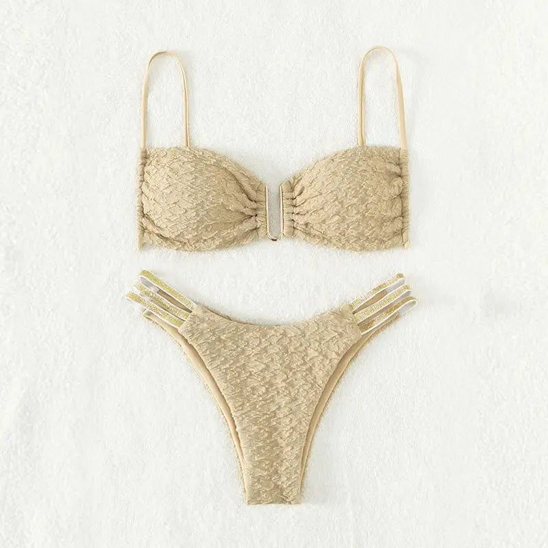 2 Piece Solid Color Back Tie Swimsuit