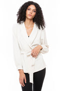 Elevate your wardrobe with the Michelle Wrap Jacket, a versatile and stylish piece designed for effortless sophistication. Featuring a flattering wrap design, adjustable tie closure, and tailored fit, this jacket enhances your silhouette while providing comfort and elegance. Perfect for layering over dresses, tops, or casual ensembles, it transitions seamlessly from day to night, making it ideal for work, brunches, or evening outings. Crafted from high-quality materials, the Michelle Wrap Jacket combines timeless style, durability, and modern fashion, making it a must-have addition to any woman’s wardrobe.