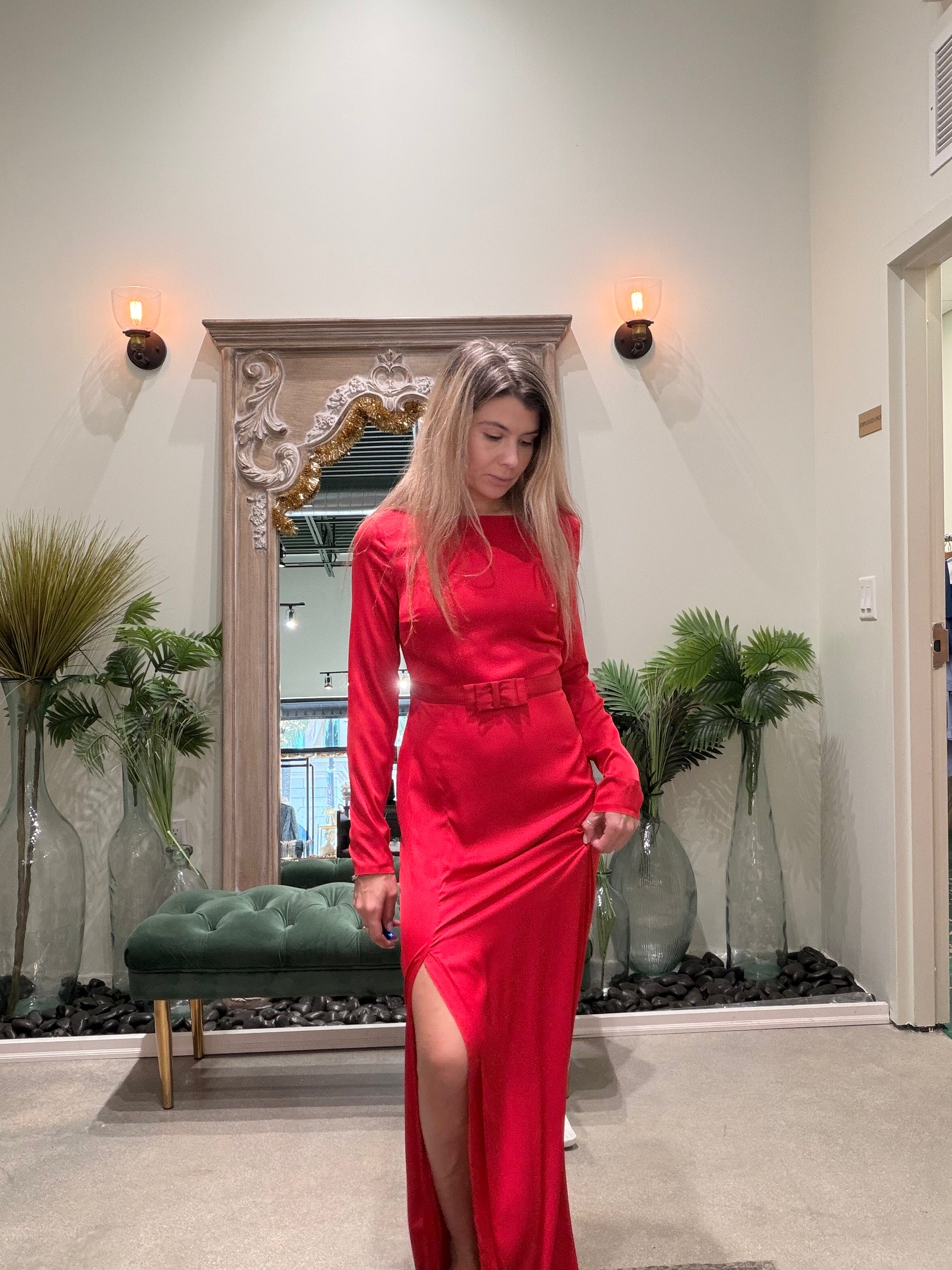 Slip into timeless elegance with our Monte Carlo Red Long Sleeve Dress. Crafted from luxurious silk, this stunning piece features graceful long sleeves and a rich crimson hue that commands attention. Perfect for date nights, special occasions, or whenever you want to feel absolutely fabulous. The fluid silk fabric drapes beautifully against your skin, offering both comfort and sophistication. Whether you're heading to a gala or a chic dinner party, this dress is your secret weapon for looking effortlessly glamorous. Confidence never looked so good.